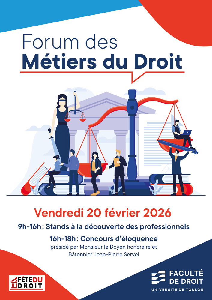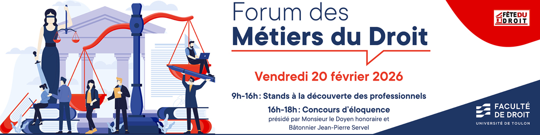 Si vous hésitez encore, une table ronde sur les métiers du droit public pourra éclairer vos choix. Le Forum présentera en outre le panel des filières de formation offertes par la Faculté de Droit de Toulon et de son antenne de Draguignan. Ses laboratoires de recherche seront également représentés pour orienter votre parcours universitaire au mieux, selon votre projet professionnel.